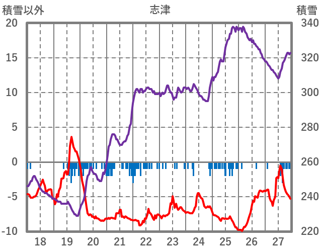 | 日 | 時 | 気温 | 降水 | 風向/風速 | 日照 | 積雪 | 降雪 |
