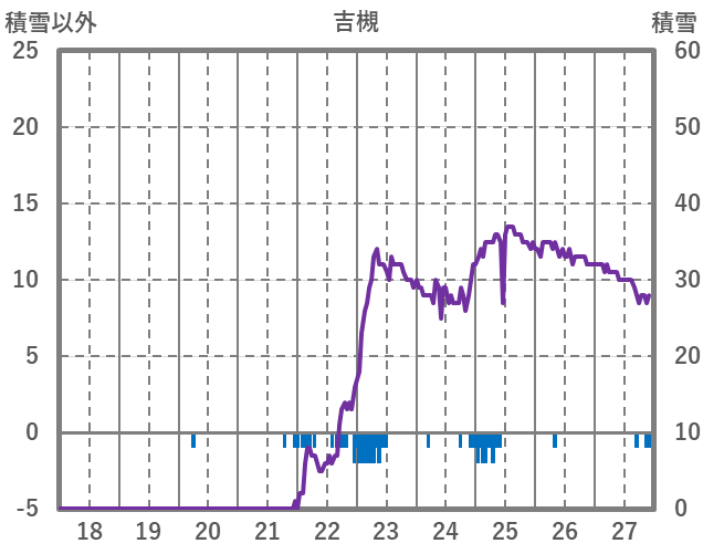 | 日 | 時 | 気温 | 降水 | 風向/風速 | 日照 | 積雪 | 降雪 |
