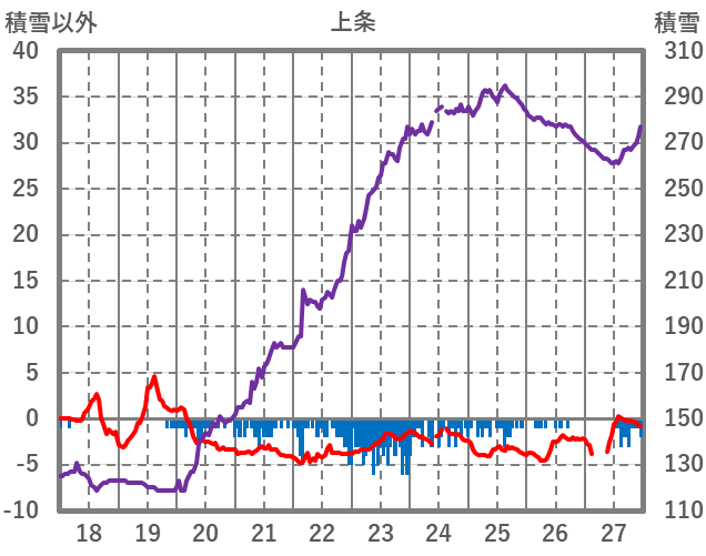 | 日 | 時 | 気温 | 降水 | 風向/風速 | 日照 | 積雪 | 降雪 |