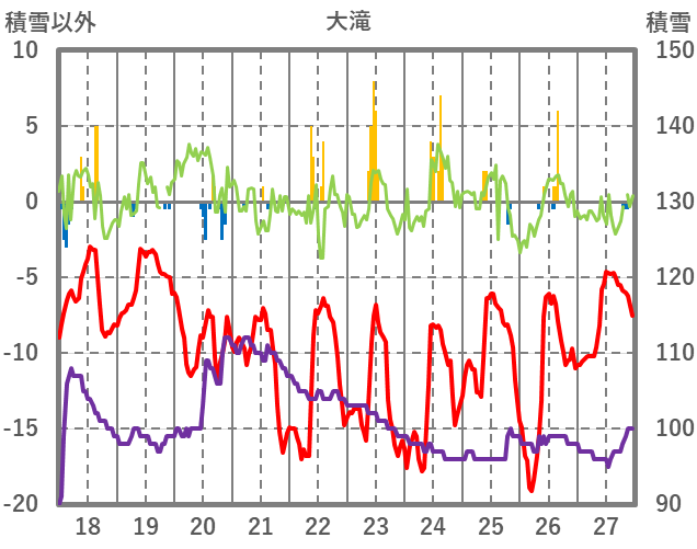 | 日 | 時 | 気温 | 降水 | 風向/風速 | 日照 | 積雪 | 降雪 |