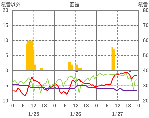 | 日 | 時 | 気温 | 降水 | 風向/風速 | 日照 | 積雪 | 降雪 |