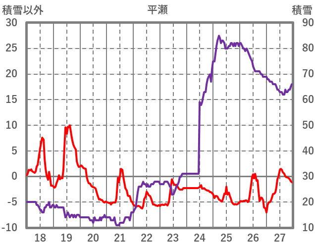 | 日 | 時 | 気温 | 降水 | 風向/風速 | 日照 | 積雪 | 降雪 |
