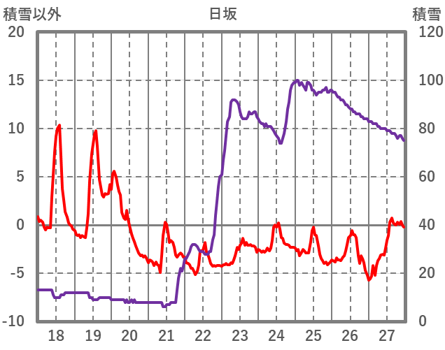 | 日 | 時 | 気温 | 降水 | 風向/風速 | 日照 | 積雪 | 降雪 |