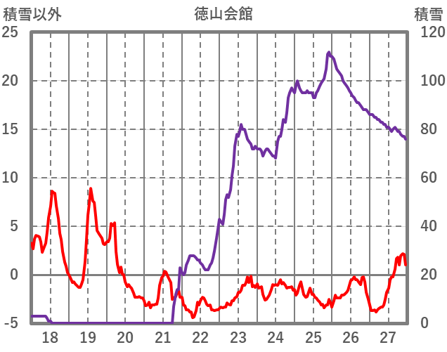| 日 | 時 | 気温 | 降水 | 風向/風速 | 日照 | 積雪 | 降雪 |