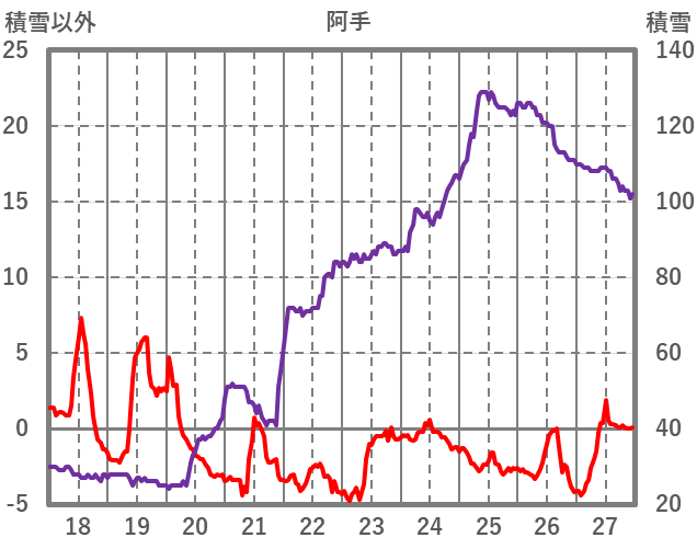 | 日 | 時 | 気温 | 降水 | 風向/風速 | 日照 | 積雪 | 降雪 |