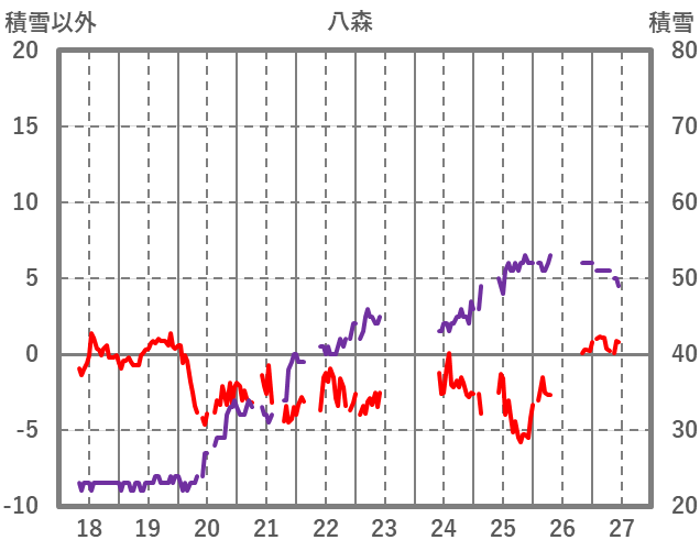 | 日 | 時 | 気温 | 降水 | 風向/風速 | 日照 | 積雪 | 降雪 |