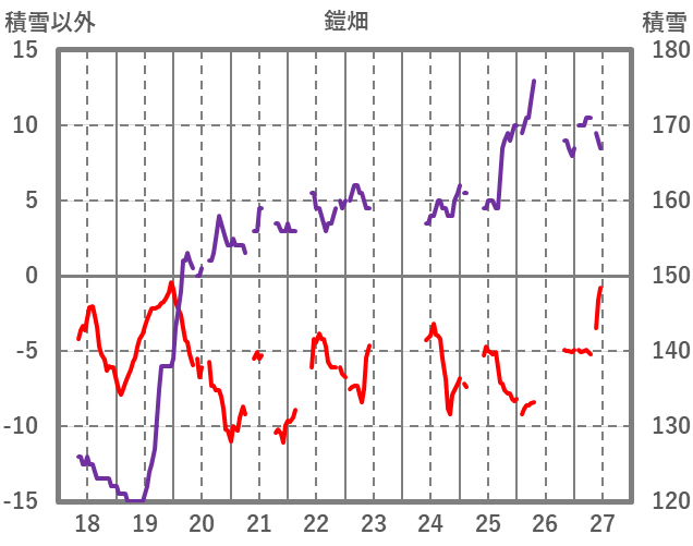 | 日 | 時 | 気温 | 降水 | 風向/風速 | 日照 | 積雪 | 降雪 |