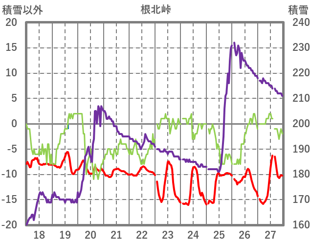 | 日 | 時 | 気温 | 降水 | 風向/風速 | 日照 | 積雪 | 降雪 |