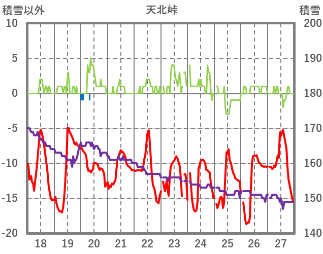 | 日 | 時 | 気温 | 降水 | 風向/風速 | 日照 | 積雪 | 降雪 |