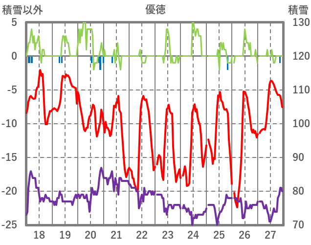 | 日 | 時 | 気温 | 降水 | 風向/風速 | 日照 | 積雪 | 降雪 |