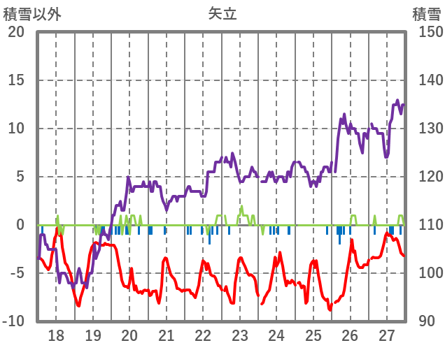 | 日 | 時 | 気温 | 降水 | 風向/風速 | 日照 | 積雪 | 降雪 |