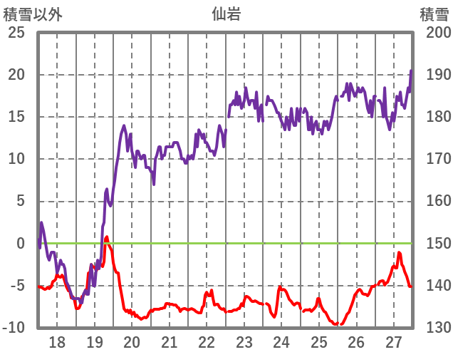 | 日 | 時 | 気温 | 降水 | 風向/風速 | 日照 | 積雪 | 降雪 |