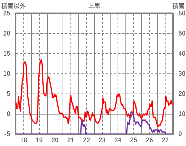 | 日 | 時 | 気温 | 降水 | 風向/風速 | 日照 | 積雪 | 降雪 |