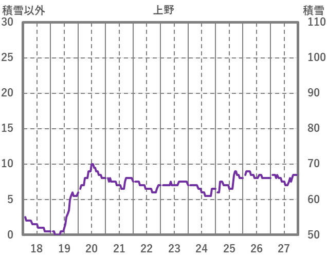 | 日 | 時 | 気温 | 降水 | 風向/風速 | 日照 | 積雪 | 降雪 |