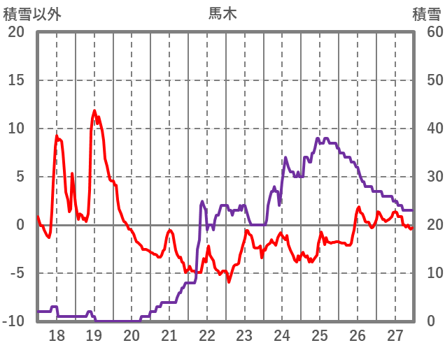 | 日 | 時 | 気温 | 降水 | 風向/風速 | 日照 | 積雪 | 降雪 |