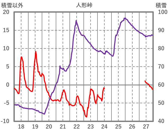 | 日 | 時 | 気温 | 降水 | 風向/風速 | 日照 | 積雪 | 降雪 |