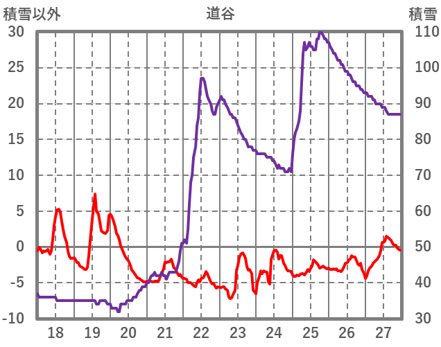 | 日 | 時 | 気温 | 降水 | 風向/風速 | 日照 | 積雪 | 降雪 |