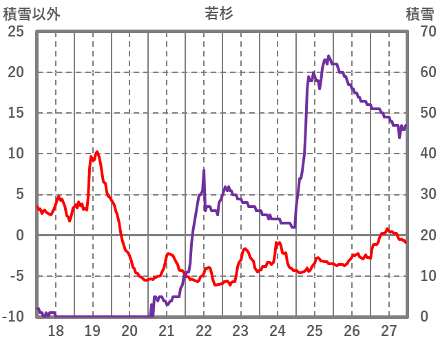 | 日 | 時 | 気温 | 降水 | 風向/風速 | 日照 | 積雪 | 降雪 |