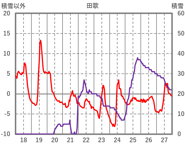 | 日 | 時 | 気温 | 降水 | 風向/風速 | 日照 | 積雪 | 降雪 |