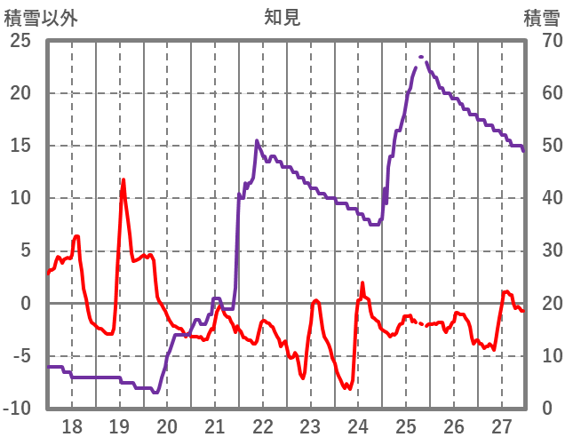 | 日 | 時 | 気温 | 降水 | 風向/風速 | 日照 | 積雪 | 降雪 |