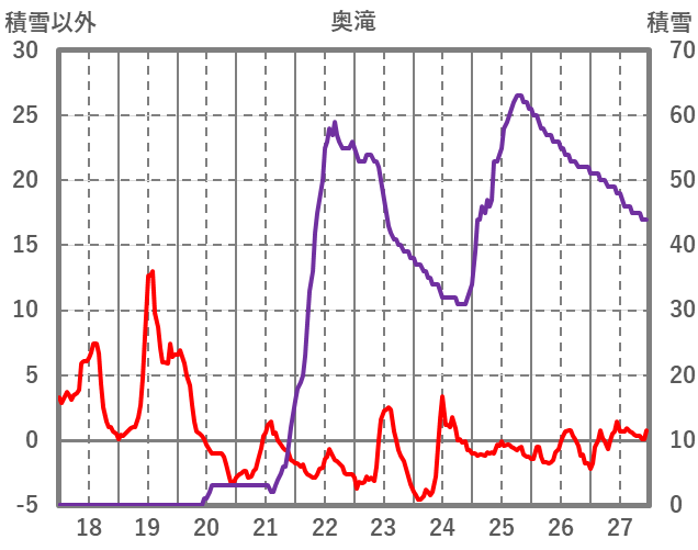 | 日 | 時 | 気温 | 降水 | 風向/風速 | 日照 | 積雪 | 降雪 |