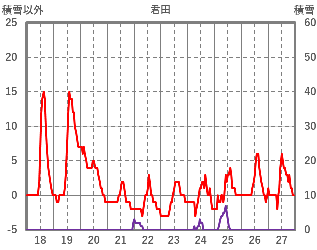 | 日 | 時 | 気温 | 降水 | 風向/風速 | 日照 | 積雪 | 降雪 |