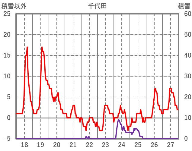| 日 | 時 | 気温 | 降水 | 風向/風速 | 日照 | 積雪 | 降雪 |