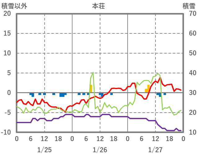 | 日 | 時 | 気温 | 降水 | 風向/風速 | 日照 | 積雪 | 降雪 |