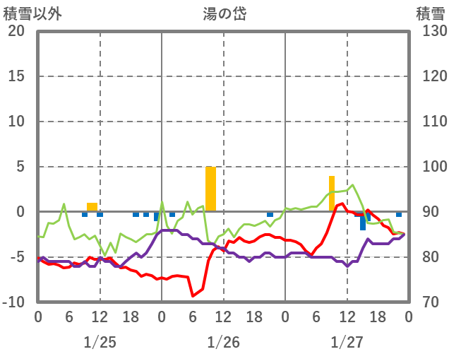 | 日 | 時 | 気温 | 降水 | 風向/風速 | 日照 | 積雪 | 降雪 |