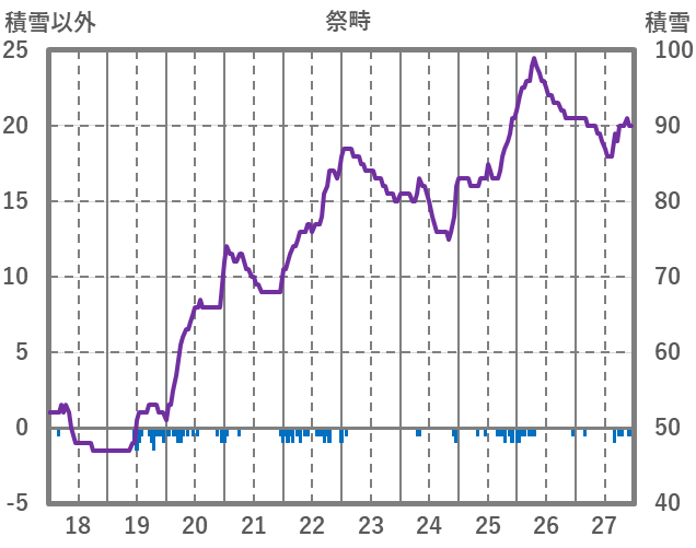 | 日 | 時 | 気温 | 降水 | 風向/風速 | 日照 | 積雪 | 降雪 |