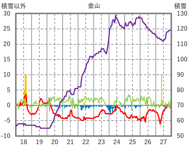 | 日 | 時 | 気温 | 降水 | 風向/風速 | 日照 | 積雪 | 降雪 |
