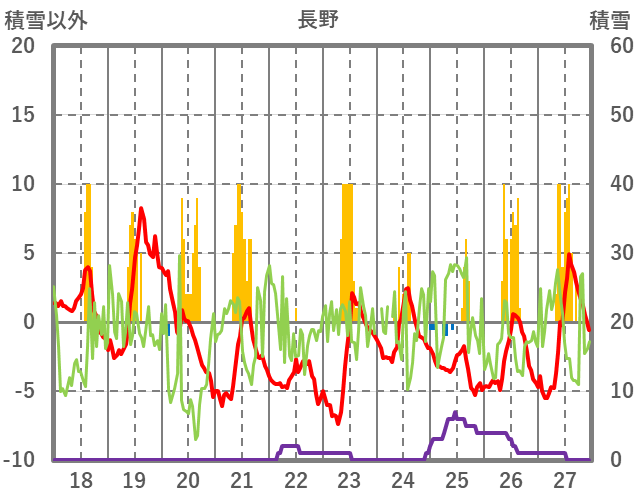 | 日 | 時 | 気温 | 降水 | 風向/風速 | 日照 | 積雪 | 降雪 |