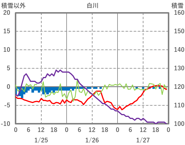 | 日 | 時 | 気温 | 降水 | 風向/風速 | 日照 | 積雪 | 降雪 |