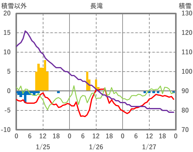 | 日 | 時 | 気温 | 降水 | 風向/風速 | 日照 | 積雪 | 降雪 |