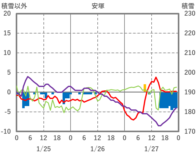 | 日 | 時 | 気温 | 降水 | 風向/風速 | 日照 | 積雪 | 降雪 |