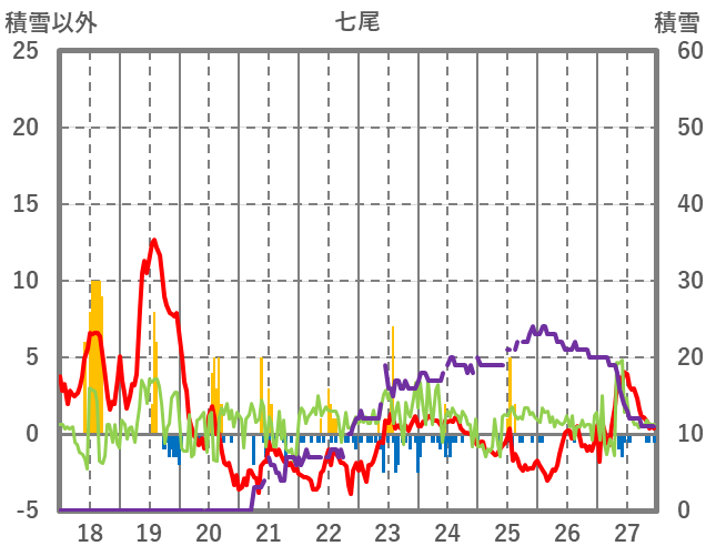 | 日 | 時 | 気温 | 降水 | 風向/風速 | 日照 | 積雪 | 降雪 |