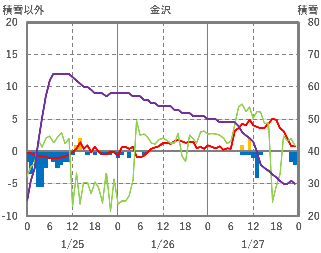| 日 | 時 | 気温 | 降水 | 風向/風速 | 日照 | 積雪 | 降雪 |