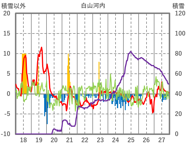| 日 | 時 | 気温 | 降水 | 風向/風速 | 日照 | 積雪 | 降雪 |