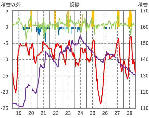 | 日 | 時 | 気温 | 降水 | 風向/風速 | 日照 | 積雪 | 降雪 |