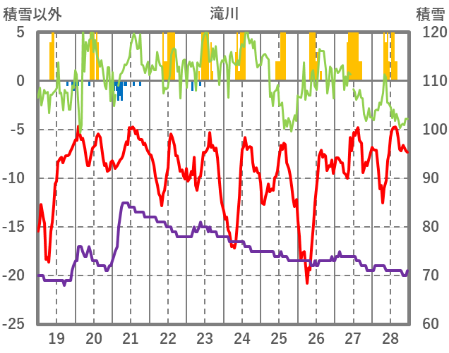 | 日 | 時 | 気温 | 降水 | 風向/風速 | 日照 | 積雪 | 降雪 |
