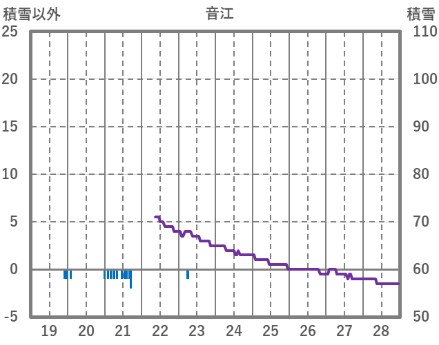 | 日 | 時 | 気温 | 降水 | 風向/風速 | 日照 | 積雪 | 降雪 |