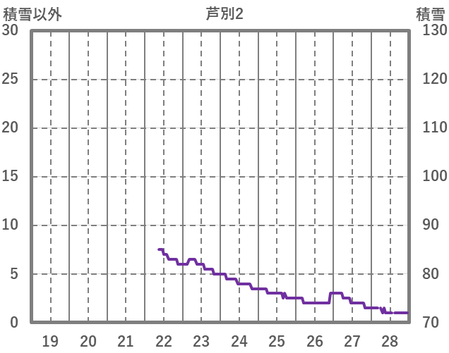 | 日 | 時 | 気温 | 降水 | 風向/風速 | 日照 | 積雪 | 降雪 |