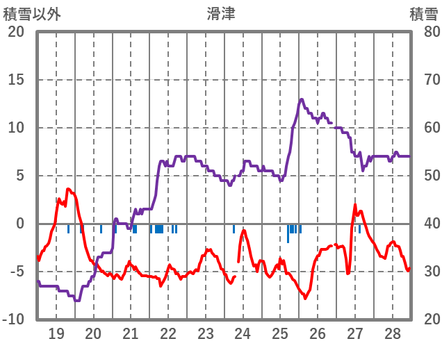 | 日 | 時 | 気温 | 降水 | 風向/風速 | 日照 | 積雪 | 降雪 |