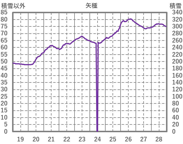 | 日 | 時 | 気温 | 降水 | 風向/風速 | 日照 | 積雪 | 降雪 |