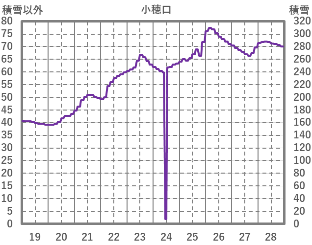 | 日 | 時 | 気温 | 降水 | 風向/風速 | 日照 | 積雪 | 降雪 |
