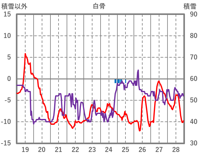 | 日 | 時 | 気温 | 降水 | 風向/風速 | 日照 | 積雪 | 降雪 |