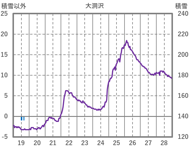 | 日 | 時 | 気温 | 降水 | 風向/風速 | 日照 | 積雪 | 降雪 |