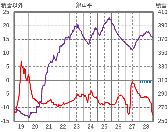 | 日 | 時 | 気温 | 降水 | 風向/風速 | 日照 | 積雪 | 降雪 |