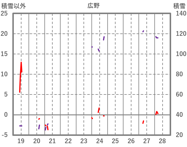 | 日 | 時 | 気温 | 降水 | 風向/風速 | 日照 | 積雪 | 降雪 |