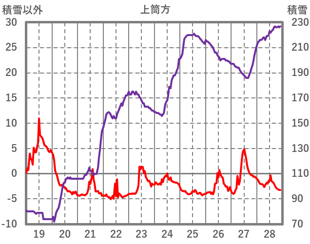 | 日 | 時 | 気温 | 降水 | 風向/風速 | 日照 | 積雪 | 降雪 |